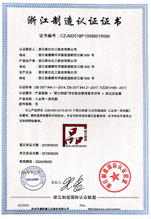 “工业用一异丙胺”产品通过浙江制造认证;中国石油和化工企业500强(第465位)