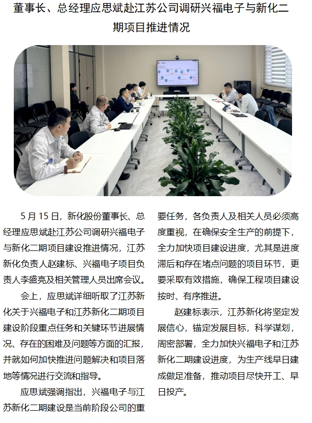 董事长、总经理应思斌赴江苏公司调研兴福电子与新化二期项目推进情况